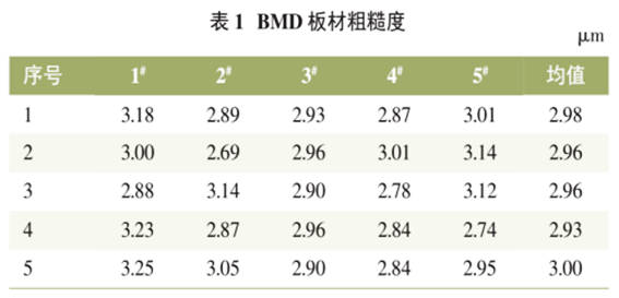 重卡車架采用水洗拋丸板,按Q/JQ16427《BMD板材電泳涂裝技術(shù)要求》,BMD 板材外觀不應(yīng)有影響電泳涂裝后的外觀質(zhì)量缺陷,不應(yīng)有影響漆膜附著力的氧化膜,表面粗糙度 Ra(0.8mm測長)要求均值3.0μm,最大值<3.5μm,涂油量5g/㎡?,F(xiàn)場對BMD板材進行外觀檢測,其中粗糙度Ra檢測數(shù)據(jù)見表1。