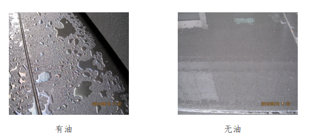 向金屬表面呼氣,清潔的表面有均勻的霧水, 而有油的地方?jīng)]有霧水,需進(jìn)一步去油