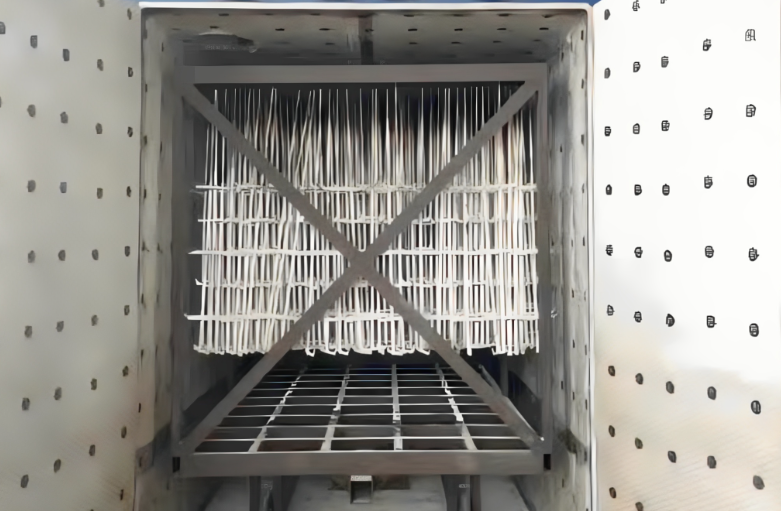 高溫?zé)峤馐悄壳巴垦b掛具清理中最常用且應(yīng)用最廣泛的方法。該方法通過高溫作用,使涂層內(nèi)的樹脂和添加劑進(jìn)一步炭化,隨后利用水霧對(duì)炭化的涂層進(jìn)行粉化處理,最終達(dá)到有效去除掛具表面涂層的目的。