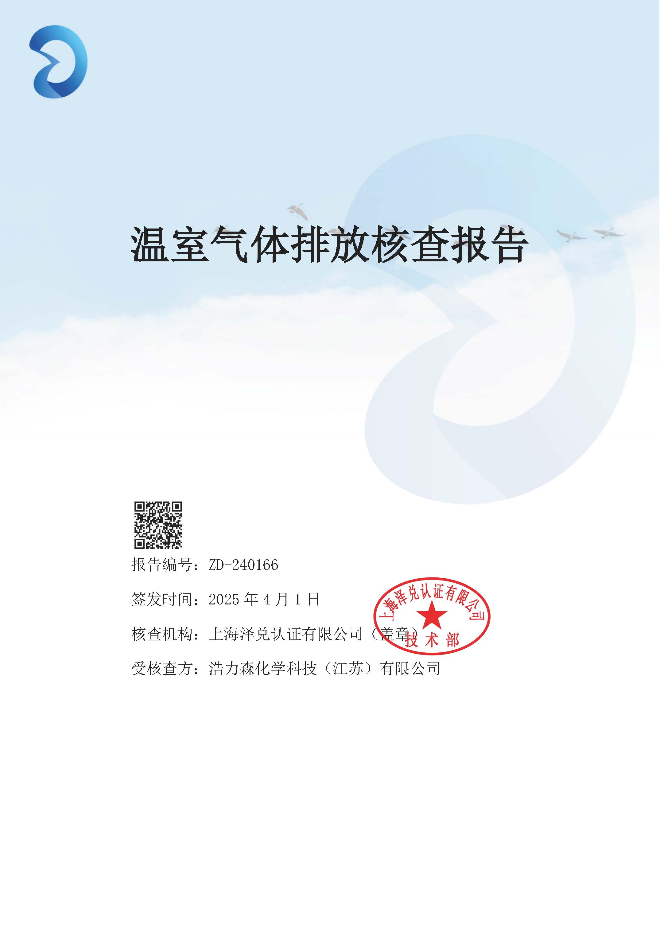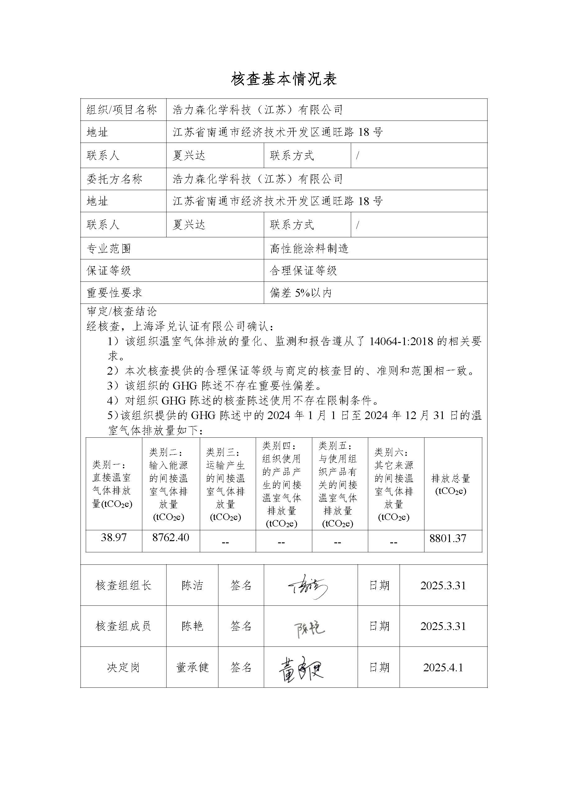 浩力森2024年度溫室氣體核查報(bào)告
